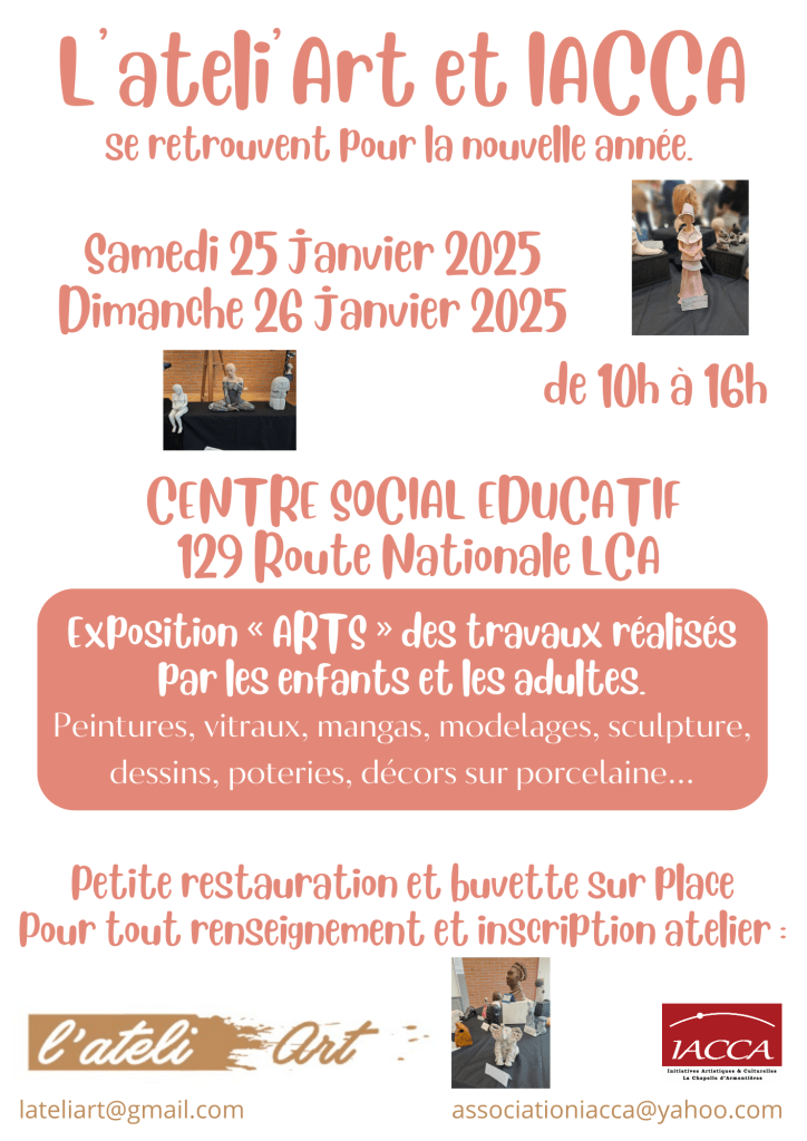 25 et 26 JANVIER: EXPOSITION DES ARTS et ATELIERS CREATIFS: