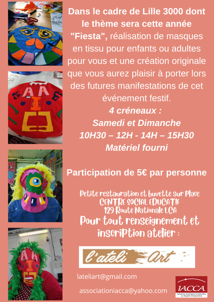 Dans le cadre de Lille 3000/Fiesta, des ateliers de création de masques sont proposés.