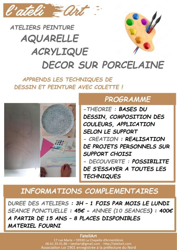 L’artiste Colette Fosset vous attend 1 fois par mois le lundi pour vous apprendre le maniement des pinceaux