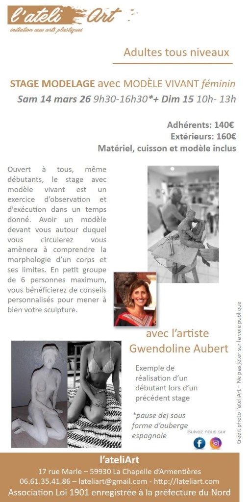 encadrés par notre intervenante référente en modelage, venez vous essayer à un exercice d’observation en modelant votre propre statue à partir d’un modèle vivant.